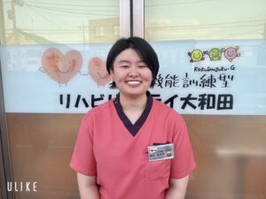 リハビリデイ大和田の特長 機能訓練特化型通所施設『リハビリデイ大和田』最新機器を駆使した機能訓練で、自立支援をサポート 「リハビリデイ大和田」は、東京・千葉・札幌を中心に接骨院・クリニック・マッサージ院を擁する、40余年の実績あるこくしゅ塾グループが運営する安心の施設です。 臨床経験をもとにした整骨医学をリハビリデイサービスへと活用し、より地域の皆様方のお役に立てるように努力してまいります。 明るく広々とした 快適スペース 2020年5月OPENの新規開設施設にて、ご利用者様は気持ちよく快適に、機能回復を目的とした安全な運動プログラムを受けていただけます。 充実した設備や リハビリ器具 「レッドコードトレーニング」「油圧マシントレーニング」など機能訓練士によるリハビリやマシンを使ったパワーリハビリを行うことができます。 施設紹介・ご利用スケジュール 八千代市大和田の『リハビリデイ大和田』は、国家資格を持った機能訓練士によるリハビリやマシンを使ったパワーリハビリを行うリハビリ特化型の機能訓練型デイサービスです。 ご利用者様お一人おひとりの状態に合わせた個別の機能訓練を行っています。 メニューも全体体操、器具を使ったトレーニング、個別メニューと、本格的な内容になっております。 「レッドコードトレーニング」「油圧マシントレーニング」「ウォーターベッド」「ドクターメドマー(エアーマッサージ器)」など、様々な充実のリハビリ器具をご用意しております。 ご家族の皆様と連携し、ご利用者様に寄り添ったケアで身体機能や健康の維持・回復・改善のサポートを行っていきます。 ご利用スケジュール例 8:15 / 12:30 お迎え 9:00 / 13:15 事業所到着 バイタル測定 9:10 / 13:25 準備体操 9:15 / 13:30 機能訓練 11:40 / 15:55 休息 12:15 / 16:30 お送り スタッフ紹介 施設長 鶴巻 加奈 Message 初めまして、施設長の鶴巻加奈です。 私は、よく食べて、よく笑い、よく寝るタイプで大きく育ってきました! そのおかげか、身長も伸び、人見知りせず、人と携わる仕事に就きたいと思い、介護の現場で働いています。 持ち前の明るさと笑顔を忘れず、ご利用者様から「また来たい!」「楽しかった!」と言っていただけるような環境づくりに努めてまいります。 人と人との関わりを大切に、副施設長や他スタッフと協力しながら、よりよいサービスを提供していきます。 よろしくお願いいたします。 副施設長 生活相談員(介護福祉士) 機能訓練士(柔道整復師) 繪面美咲希 Message これまでは、柔道整復師・介護福祉士としてご利用者様の身体機能や生活を支える仕事に携わってきました。 これからは副施設長としての責任を担いながら、機能訓練士・生活相談員としての専門性をより一層発揮し、ご利用者様が安心して笑顔で過ごせる環境を作っていくことが目標です。 一人ひとりに寄り添い、その方らしい生活を続けていただけるよう、施設長やスタッフと力を合わせて取り組んでまいります。 どうぞよろしくお願いいたします。 送迎サービスについて 八千代市を送迎エリアに、ご利用者様の安心・安全を最優先に考え、専門資格を有したスタッフが専用車にてご利用者様の送迎を行っております。 送迎のお時間などの詳細につきましては、お気軽にお問い合わせください。 健康状態のチェックについて 施設に到着後などに血圧・体温・脈拍などのバイタルチェックを行い、健康状態を確認いたします。 ご自宅で記録していらっしゃる場合には、合わせて健康チェックに活用させていただきますのでご持参ください。 ご利用者様お一人おひとりの健康状態を丁寧にチェックし、細やかにケアしてまいります。 ご利用料金一覧表 介護度 料金 ◆要介護の方(1日あたり) 要介護1 433円 要介護2 497円 要介護3 562円 要介護4 624円 要介護5 690円 ◆要支援の方(一か月あたり) 要支援1 1,747円 要支援2 3,582円 ※上記料金は介護保険負担割合1割の場合となります。 ※別途加算あり 施設見学・個別相談 施設への見学、ご相談は、随時承っております。無料送迎も行っております。 お電話にてお気軽にお申し付けください。 リハビリデイ大和田 営業時間:9:00~17:00(祝日も営業いたします) 利用定員:18名 送迎エリア:八千代市 定休日:日曜日・年末年始 お電話でのお問い合わせ TEL:047-409-7061
